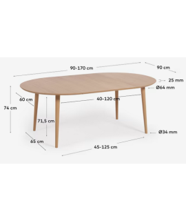 Tavolo tondo allungabile diventa ovale, con piano in MDF impiallacciato rovere. Piedi in legno massello di faggio naturale. Con prolunghe da cm 40 ognuna. Lunghezza massima cm 170. Le allunghe sono tutte in finitura come piano e sono da riporre a parte nella pratica borsa in tela nera non inclusa (vedi sotto). Guide telescopiche in metallo, apertura a scorrimento gambe. Raffinato nella sua semplicità e linearità. Un meraviglioso e accogliente tavolo che con i suoi colori chiari illumina l'ambiente. Essenzialità e linearità unite a stile e design. Tutte le misure sono nella foto della scheda tecnica.