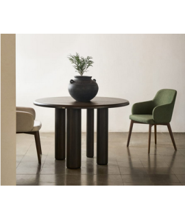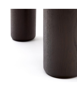 Raffinato tavolo dalla linea essenziale e gambe importanti. Realizzato in legno massello di frassino finitura scura, ogni pezzo è unico con texture e tonalità diverse. Un meraviglioso complemento d'arredo dall'estetica semplice ma di grande effetto.