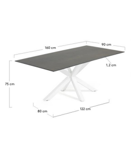 L’unito ceramica-vetro utilizzato per i piani del tavolo è un prodotto ottenuto unendo una lastra di ceramica (gres porcellanato) ad un vetro float temprato. Si ottiene così un piano dalle eccellenti proprietà estetiche e dalle notevoli proprietà di resistenza all’uso quotidiano, in particolare all’abrasione, agli urti, ai graffi, alle macchie, agli sbalzi termici ed ai prodotti chimici. E’ facile da pulire e totalmente igienico, in quanto non assorbe liquidi e non rilascia sostanze nocive.Tutte le misure sono nella foto della scheda tecnica.