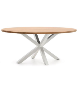 Armonioso, elegante e raffinato tavolo ovale con basamento incrociato in acciaio bianco e piano in legno massello di acacia. Un tavolo davvero invitante, unico e intrigante, dove design e stabilità lo caratterizzano. Un look attraente e moderno.