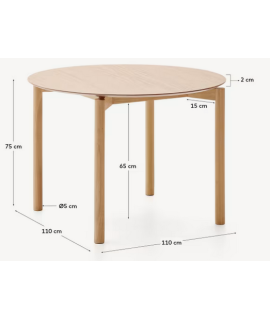 CORIK tavolo Ø 110 cm in impiallacciatura di frassino naturale e gambe in legno massello finitura frassino naturale