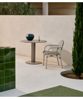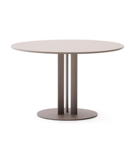 ALVIREX tavolo Ø120 o Ø80 piano in alluminio e base in acciaio per interno e per esterno