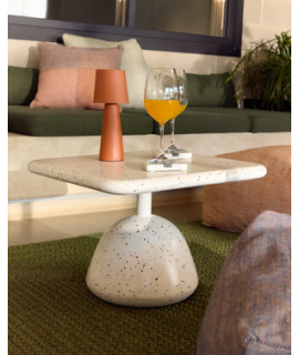 NOSTER tavolino piano 48x48 in cemento terrazzo veneziano e base in metallo e cemento per bar ristoranti