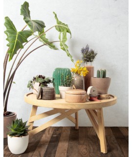 Tavolino con struttura interamente in legno massello naturale con patina grigia. Bello e pratico ideale per un arredo moderno, nordico, etnico, vintage o country.
