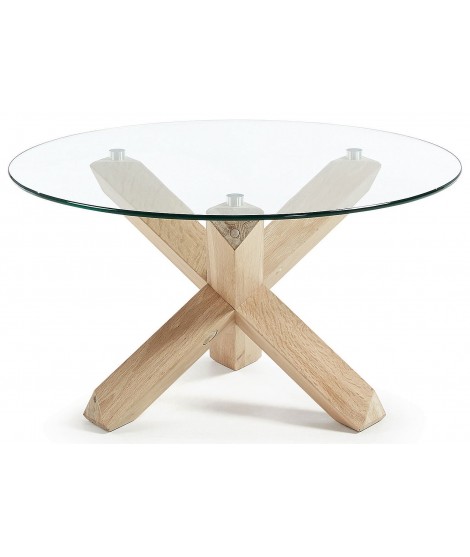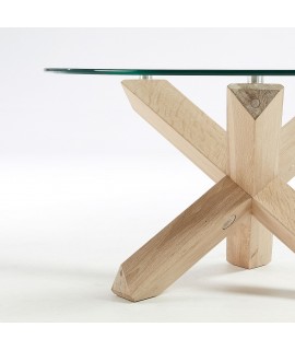 DOMINIK diam 65 tavolino in legno rovere sbiancato e piano in vetro cristallo temperato