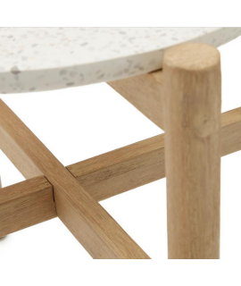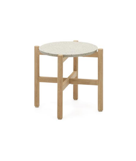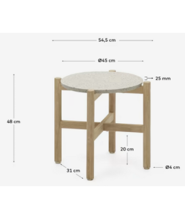 BAGAR tavolino diametro 55 cm in legno massello e piano in cemento