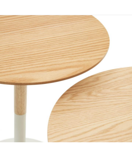 DALI set di 2 tavolini Ø 40 e Ø 48 cm impiallacciato rovere e metallo verniciato bianco opaco