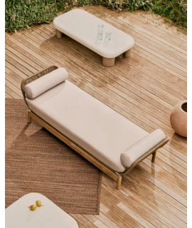 Meraviglioso tavolino in legno massello di acacia naturale e piano in cemento bianco, adatto per esterno. Il suo design unico combina la robustezza del cemento con la naturalezza delle gambe in legno. Elegante e raffinato, per conferire un aspetto ricercato ai vostri ambienti interni o esterni.
