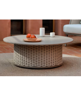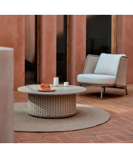 LONDON tavolino Ø 99 cm in alluminio e corda tortora per casa giardino terrazzo