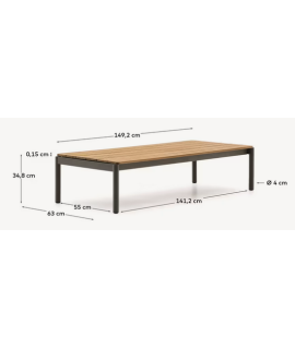 ARIO 150x63 cm tavolino in alluminio verde e piano in legno di teck per esterno giardino terrazzo