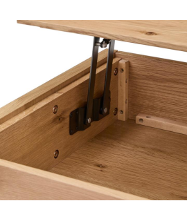 Linea accattivante per questo tavolino elegante e prestigioso. In impiallacciato rovere naturale, con piano alzabile con sistema di chiusura ammortizzata. Un meraviglioso complemento d'arredo, che trasmette luminosità all'ambiente. Sfizioso e raffinato, grintoso e dinamico, punta sulla praticità e su un design elegante.