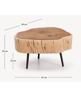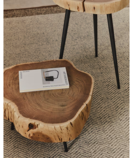 Sfizioso tavolino, uno stile naturale ricercato e semplice allo stesso tempo. Realizzato con un disco irregolare in legno massello di acacia e gambe in metallo nero. Utile e versatile, intrigante la linea essenziale e raffinata. Tutte le misure nella foto della scheda tecnica.