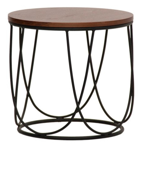 SCHAI tavolino Ø 42 cm in metallo verniciato e piano in legno