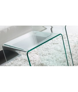 Incantevole e affascinante set di due tavolini che si avvale di una forma semplice a ponte. Un tavolino dentro l'altro o messi separatamente nel vostro ambiente, dona prestigio ed eleganza. Un gioco di luce e di purezza, che esalta tutto l'ambiente dove lo si colloca. Una linea semplice ed elegante. L'importanza del vetro cristallo crea nella vostra casa un effetto bellissimo, senza andare a contrastare con il resto della mobilia. Meraviglioso su tutti i tipi di arredo.