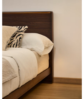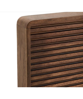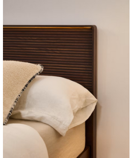 Testata per letto matrimoniale dal genere moderno. Con struttura impiallacciata noce, ha una finitura con vernice di poliuretano, che garantisce la resistenza all'usura e all'umidità. Lavorazione striata e sulla parte superiore striscia luminosa a LED da 3000K, luce calda, perfetta per un'atmosfera accogliente. Si attiva con telecomando incluso. Include cavo da 1,5 m con spina diretta. Il legno è certificato proveniente da foreste per il disboscamento controllato. Sotto i complementi della stessa linea da abbinare. Tutte le misure sono nella foto della scheda tecnica.