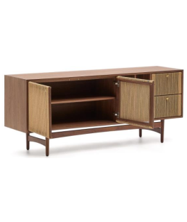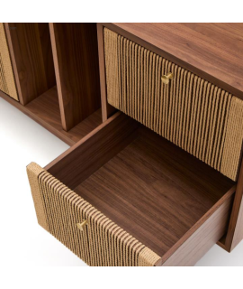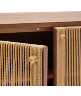 BOLO madia 180x73h cm in impiallacciatura di noce e corda e piedi in legno massello di noce